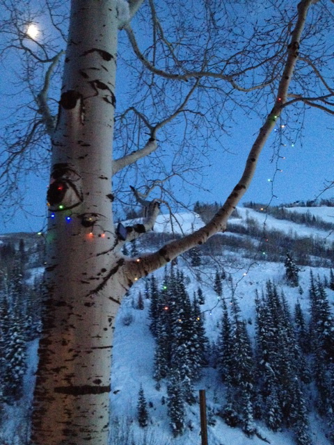 We found a set of solar lights to put on the tree outside the unit. It's a bit of a treat when they light up as it's been snowing again today (not a lot of solar!!). Took this shot at 4.30pm today.