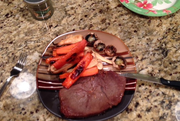 Sent this picture to the folks, so they weren't getting too worried about me eating some good healthy food (mind you I suppose I could work on the green angle a bit, ha). G'Dad was a great fan of carrots n parsnips in the pan - tasty!